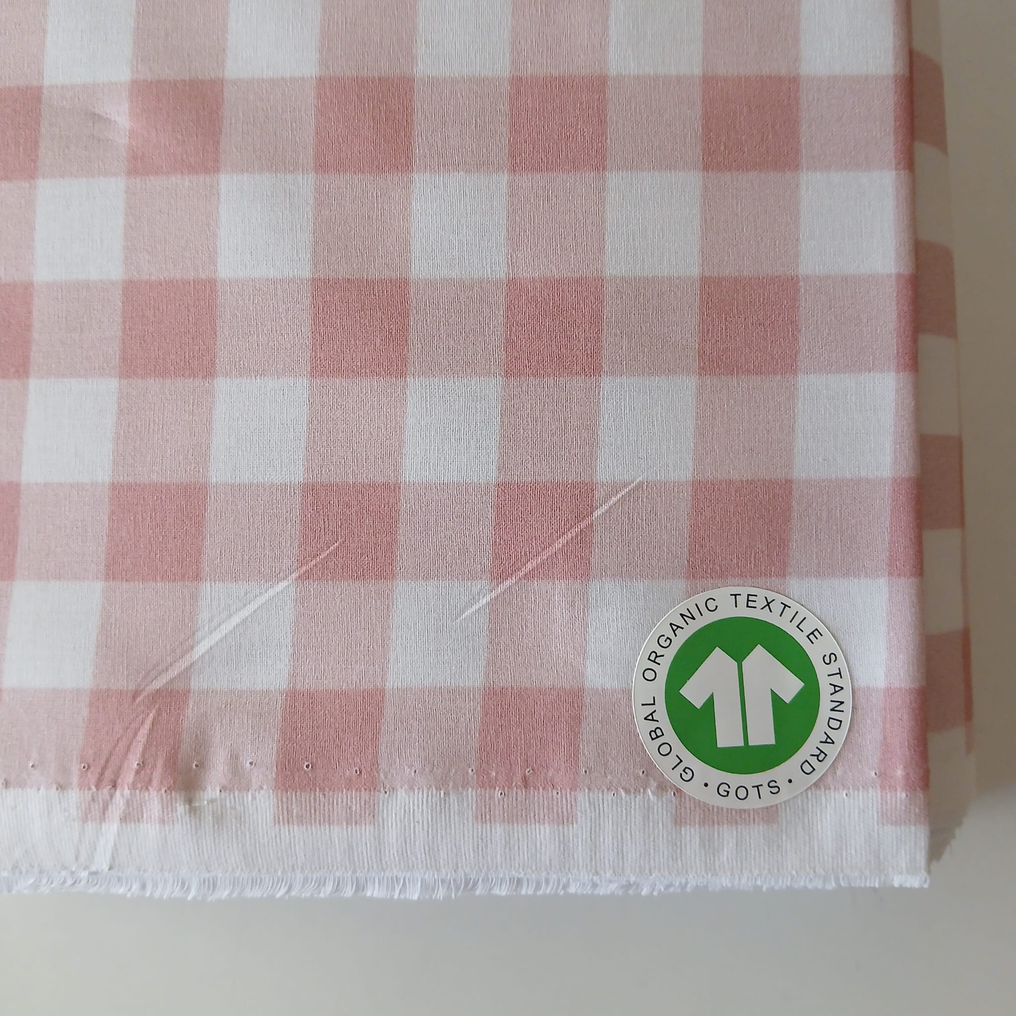 Tejido algodón Vichy 1,5 cms ROSA PASTEL 100% Algodón orgánico