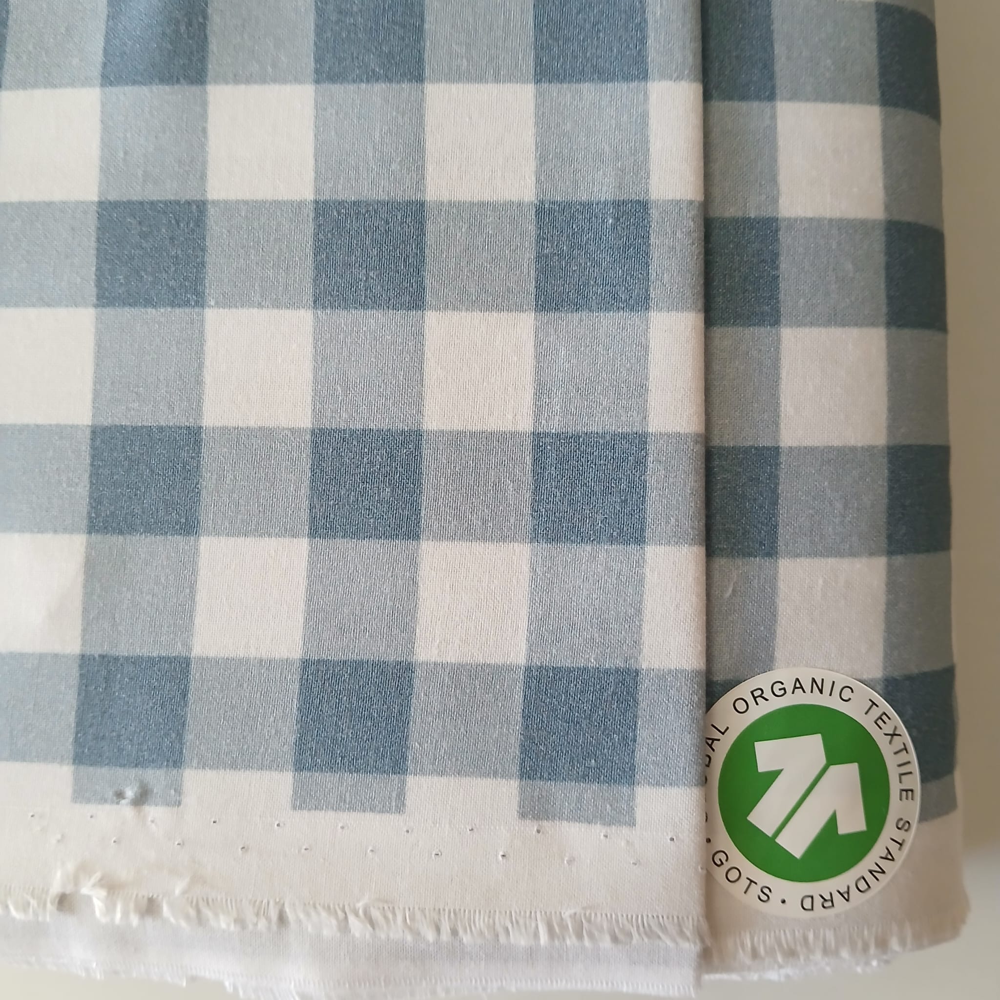 Tejido algodón Vichy 1,5 cms AZUL PASTEL 100% Algodón orgánico