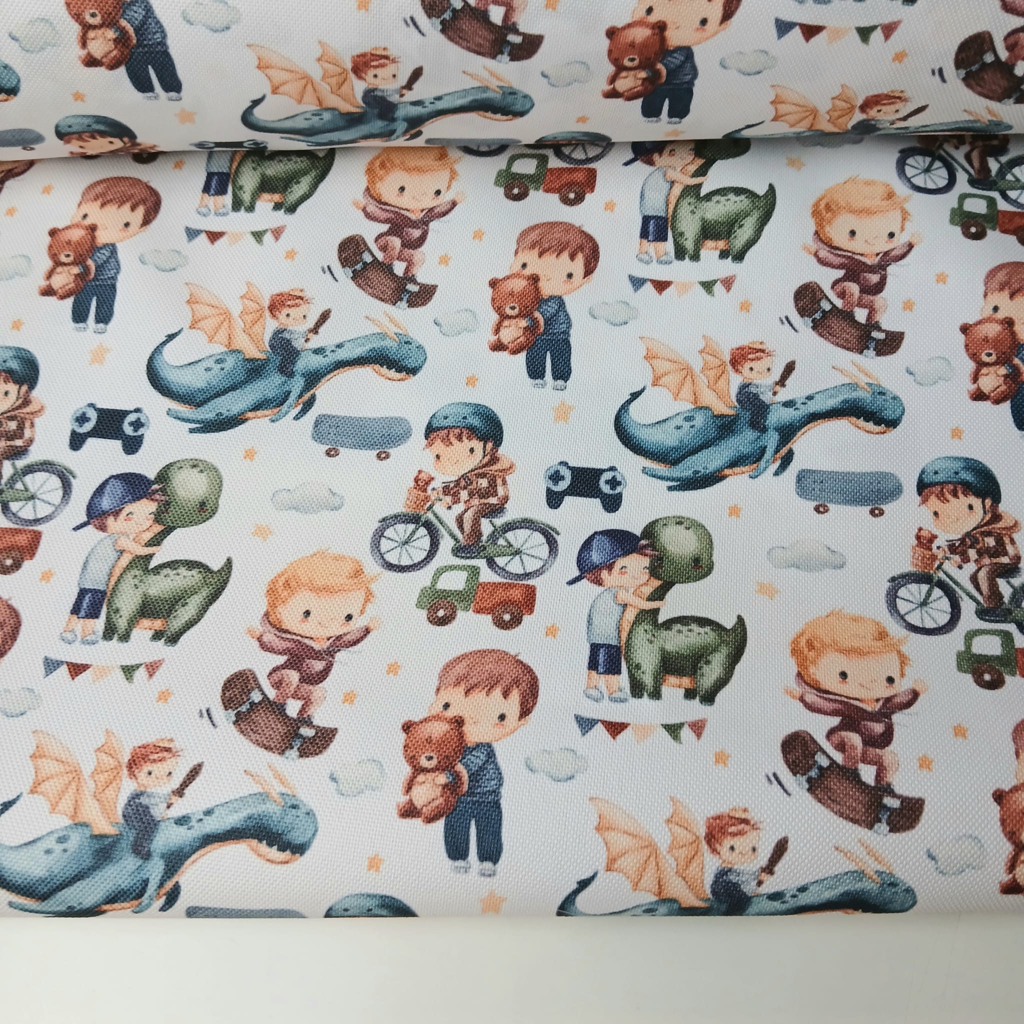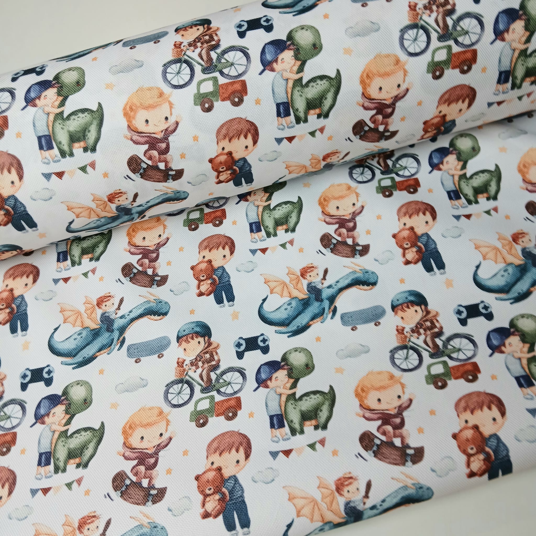 Bonito estampado en tejido impermeable. En cuanto lo tengas en tus manos y hagas tu primera creación, no querrás confeccionar con otro tejido!!! Ya que este tejido engancha !!! Te lo dice una costurera especialista en complementos de Bebé !!!